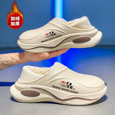 冬季洞洞鞋加绒加厚保暖包头棉拖鞋情侣款跨