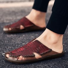 BK(爆款)夏季真皮包头拖鞋男 打孔透气