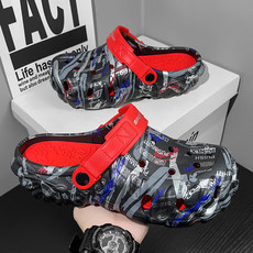 跨境大码情侣款迷彩指纹洞洞鞋包头软底凉拖