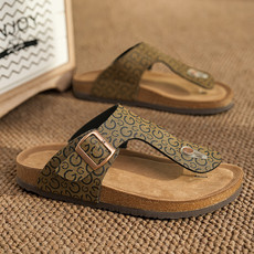 创赢轻奢夹脚勃肯软木拖鞋穆勒鞋复古搭扣休
