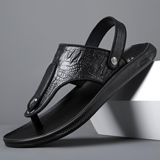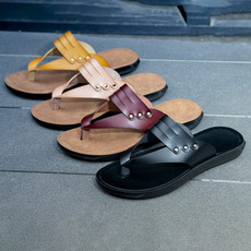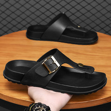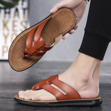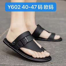跨境大码潮流时尚头层牛皮人字拖凉鞋男拖