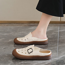 汤佐 2024-7包头半拖鞋头层皮拖鞋,
