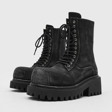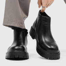 仟岚 新款男靴工装长筒拉链马丁靴厚底内增