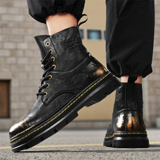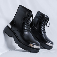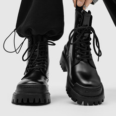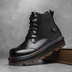 男款皮马丁靴高帮工装靴机车皮靴增高防水潮