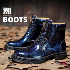 拼步蛇皮纹马丁靴37-47