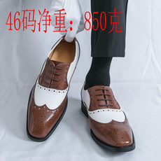 跨境大码48拼色布洛克雕花商务正装皮鞋男