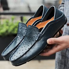 【跨境大码 )爆款真皮冲孔透气镂空豆豆男