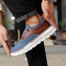 直播爆款欧洲站男鞋 冰丝布+头层牛皮板鞋