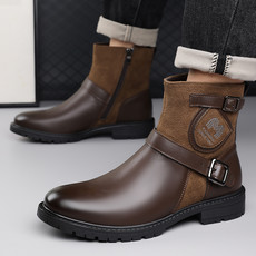 跨境爆款复古英伦风男士牛仔靴短筒男靴子潮