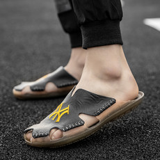 1867跨境大码夏季新款真皮包头拖鞋男