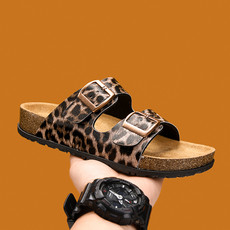 亚建东南亚风豹纹勃肯软木拖鞋穆勒鞋复古搭