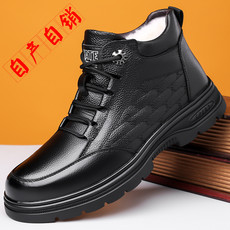 100%牛皮棉鞋加绒保暖真皮羊毛高帮皮鞋