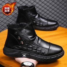 新款男鞋主推秋冬季高帮马丁靴加绒棉靴