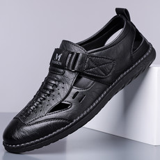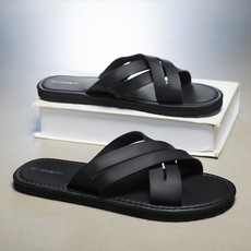 生活 男士休闲凉鞋沙滩鞋头层牛皮拖鞋