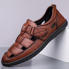 游龙鞋业-26199夏季镂空透气休闲皮鞋