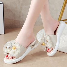 夏季新款校园仙女风大蝴蝶结皮面凉拖时尚百