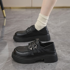 黑色工作鞋厚底松紧双扣一脚蹬乐福鞋