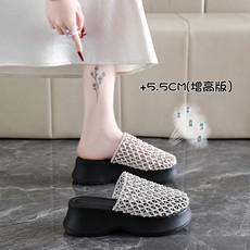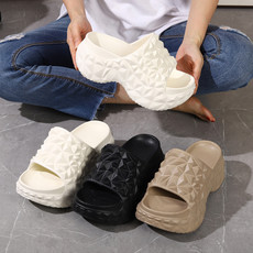 创想鞋业 夏季榴莲纹一字拖外穿厚底增高