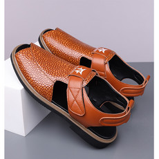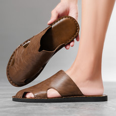 鸿运鞋业 爆款男士夏季头层皮包头拖鞋跨进