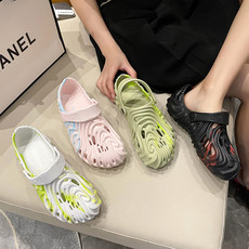689跨境大码情侣款指纹洞洞鞋包头软底凉