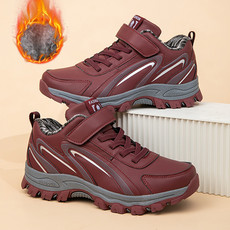 冬季新款皮面老人鞋防水加绒健步鞋防滑保暖