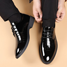 英伦亮皮男皮鞋软皮系带亮面四季正装休闲男