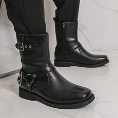 中帮增高新款青年高街设计感户外工装软皮鞋