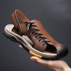 8635头层牛皮缝制休闲男凉鞋沙滩鞋