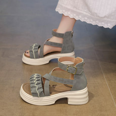 玥婷女鞋夏季新款女鞋时尚百搭粗跟女罗马凉