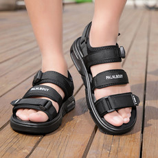 汤佐,B8569二层牛皮跨境大码魔术贴凉