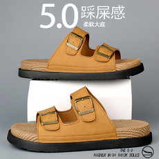 跨境大码爆款男士外穿沙滩双扣一字拖鞋39