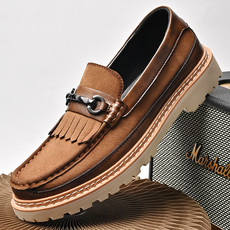 斑马纹跨境大码时尚豆豆男鞋