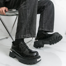 英伦风复古男士厚底增高翅头休闲皮鞋