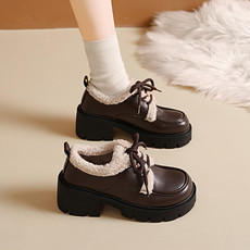 【瑞格】女鞋冬季新款加绒厚底英伦风一脚蹬