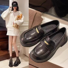2025春季新款黑色英伦风平底小皮鞋工作