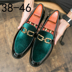 跨境大码46漆皮小皮鞋丝绒乐福鞋一脚蹬懒