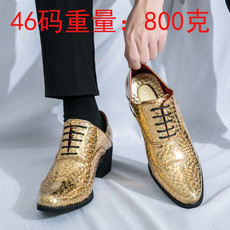 跨境大码46尖头皮鞋男高跟外增高6厘米男