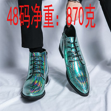 跨境大码48高帮尖头皮鞋男英伦风漆皮亮面