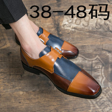 跨境大码48男士拼接一脚蹬懒人休闲皮鞋乐