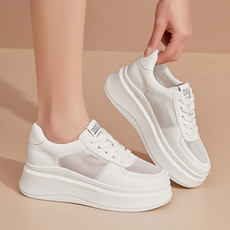文艺鞋业 厚底松糕网面透气小白鞋