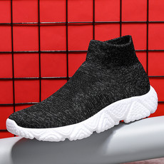 红旗鞋业-新款跨境大码飞织高帮袜子运动休