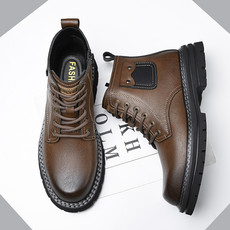 男款皮马丁靴高帮工装靴机车皮靴增高防水潮